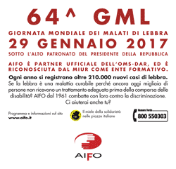 64^ Giornata Mondiale dei Malati di Lebbra Domenica 29 gennaio 2017