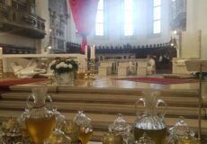 Come l’altro olio, quello del Crisma, che verrà utilizzato nella Veglia pasquale per la consacrazione di alcuni adulti qui presenti, è impregnato di profumo così il Signore impregni noi con la forza del suo spirito, ci doni il vigore e la potenza che emanano da Cristo. E come l’olio, che dal nome di Cristo viene chiamato crisma, così anche noi possiamo essere chiamati cristiani perché diffondiamo il suo stesso profumo: cristiani perché portatori del profumo della consolazione e dell’amore di Gesù, il Signore.